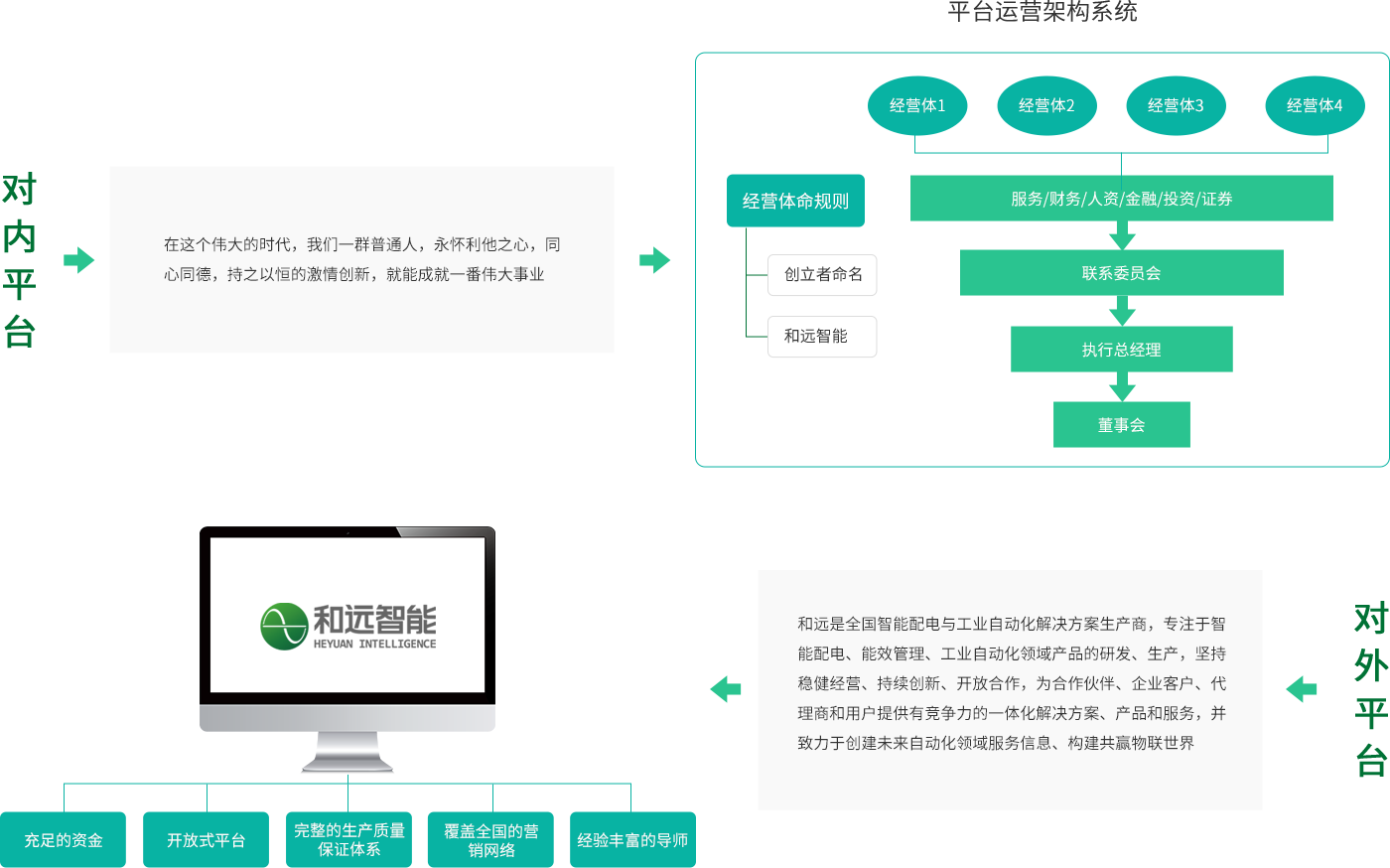 開發(fā)、合作、創(chuàng)新,為實(shí)現(xiàn)利益相關(guān)方持續(xù)經(jīng)營(yíng)而不斷努力,立 志打造電氣信息化物聯(lián)生態(tài)服務(wù)平臺(tái)