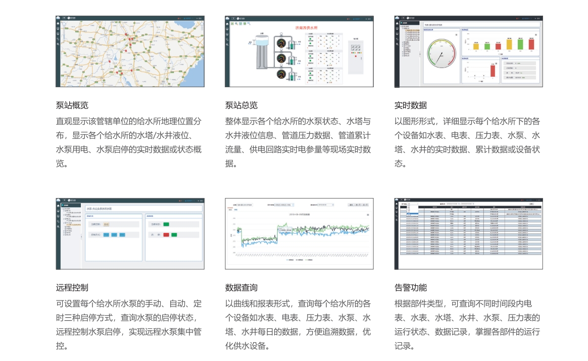 鐵路給水所承擔(dān)著車站及站區(qū)的生產(chǎn)、生活、消防等用水需求。目前,各站點(diǎn)自動化程度不同,位置分散,無自動控制,無集中管理,無運(yùn)行狀態(tài),無設(shè)備預(yù)警,均需要人工值班,手動啟停,資源浪費(fèi),實(shí)時(shí)性較差,自動化程度較低。 水源地自動化集中監(jiān)控系統(tǒng)對壓力、液位、溫度、噪音、流量等數(shù)據(jù)的采集與處理,結(jié)合自動控制技術(shù)、混合組網(wǎng)技術(shù)、云數(shù)據(jù)處理技術(shù)等,實(shí)現(xiàn)了給水自動化控制和遠(yuǎn)程集中管理,降低了供水成本,加強(qiáng)了供水安全,提高了設(shè)備管理水平。
